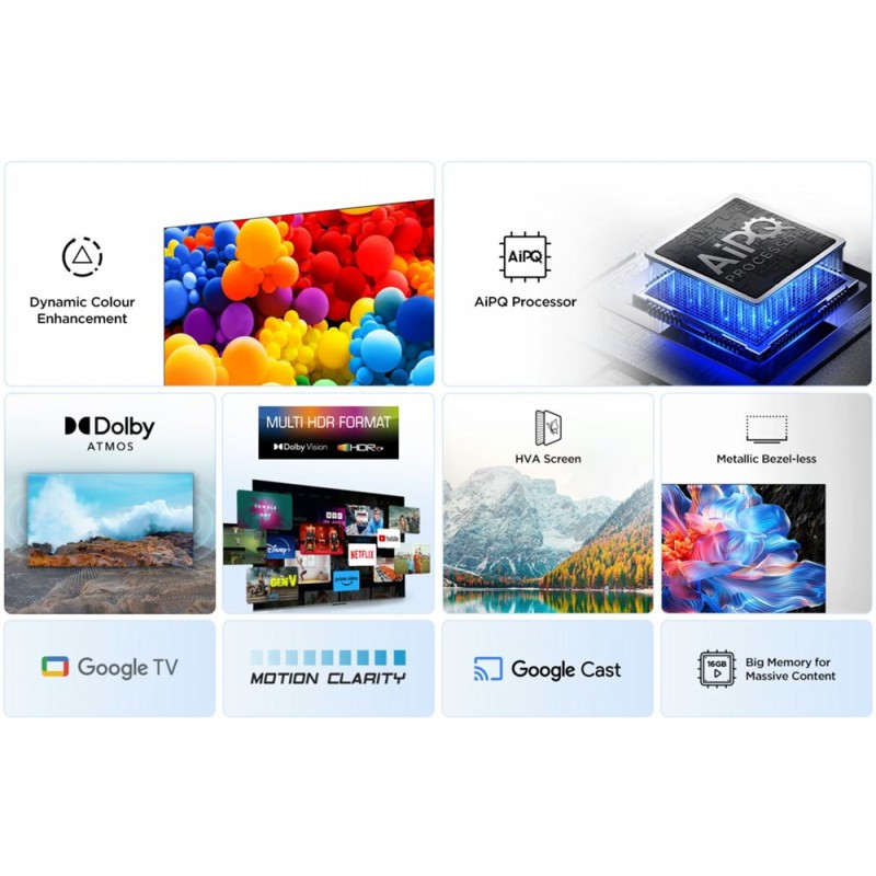De televisie maakt gebruik van de AiPQ beeldprocessor die iedere scène automatisch optimaliseert. Deze slimme beeldverwerking verbetert scherpte, kleur en helderheid zodat je altijd profiteert van een natuurgetrouwe weergave, zelfs bij snelle actiescènes of gaming.